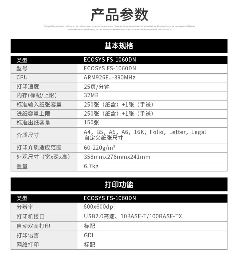 京瓷FS-1060DN 黑白打印機(jī) | 99元 | 黑色1200張 | 0.06元每張 | 1188 |