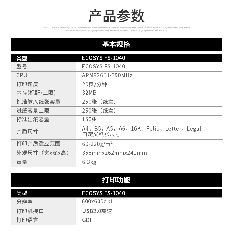 • 產(chǎn)品品牌:京瓷(KYOCERA)FS-1040激光打印機