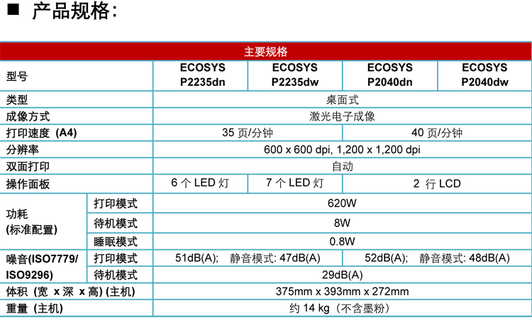 • 產(chǎn)品名稱:京瓷(KYOCERA)P2040dw激光打印機(jī)