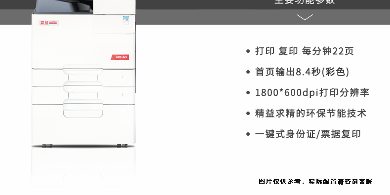 震旦(AURORA)ADC225 A3彩色多功能數(shù)碼復(fù)合機(jī) | 499元 | 彩色300張黑色3000張 | 彩色0.5每張 黑色0.08元每張 | 5988 |