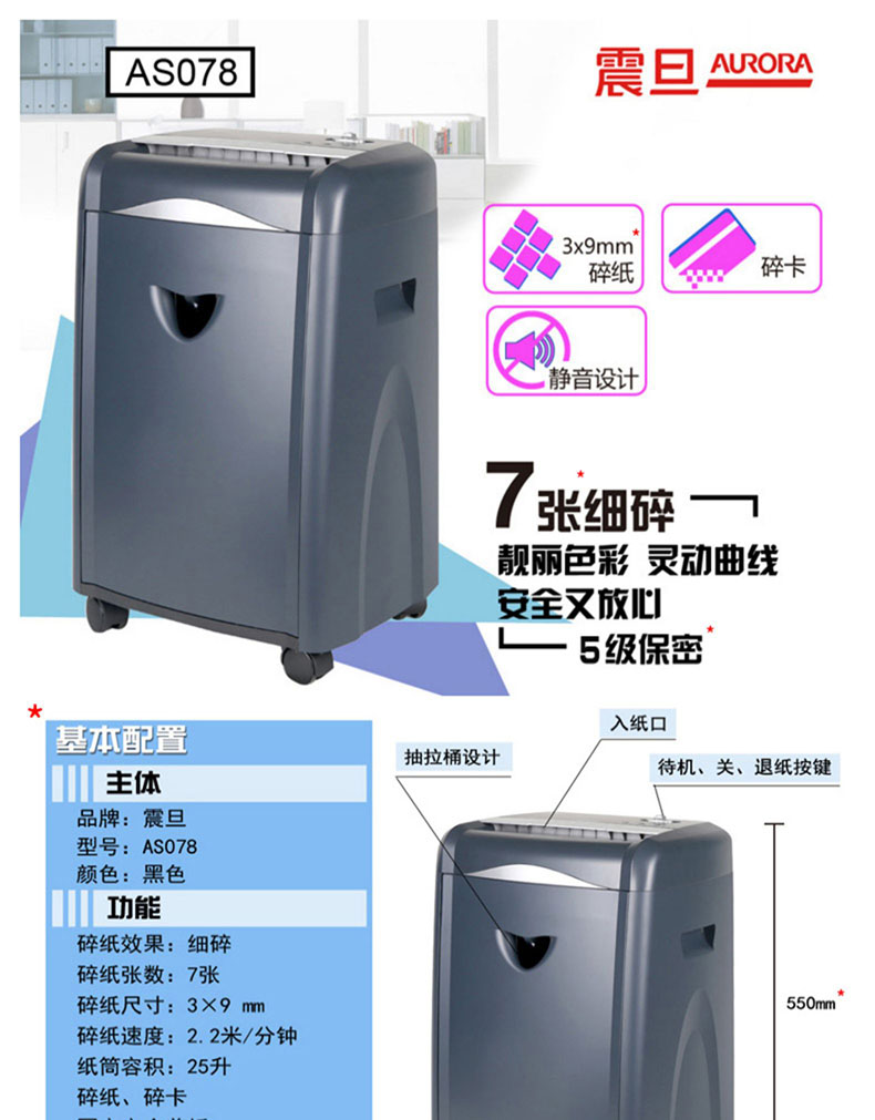 • 產(chǎn)品名稱:震旦 AS078商用大功率辦公家用電動(dòng)低音文件粉碎機(jī)顆粒碎紙機(jī)