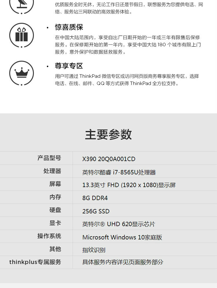 • 產(chǎn)品名稱:聯(lián)想ThinkPad X390 20Q0A001CD 13.3英寸輕薄筆記本電腦i7-8565U/8G/256GSSD FHD