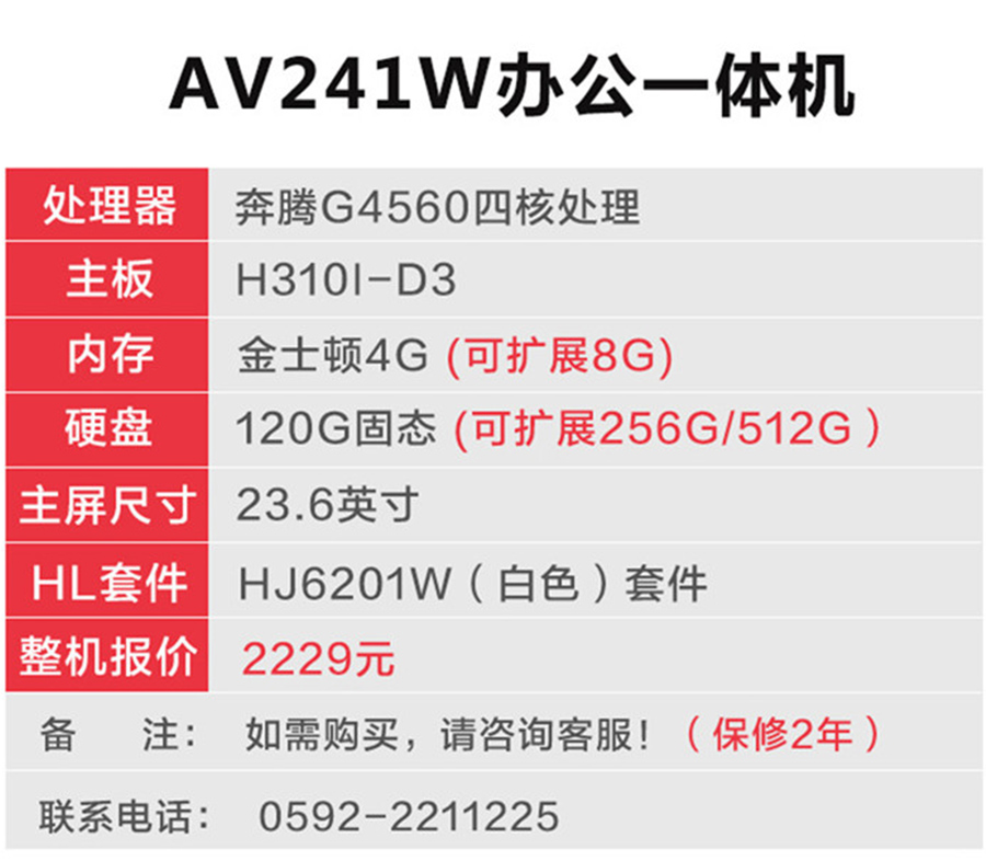 • 產(chǎn)品名稱:HL一體機(jī)臺(tái)式電腦 AV241W 23.6英寸高清屏家用辦公 G4560 8G內(nèi)存 128固態(tài) 白色