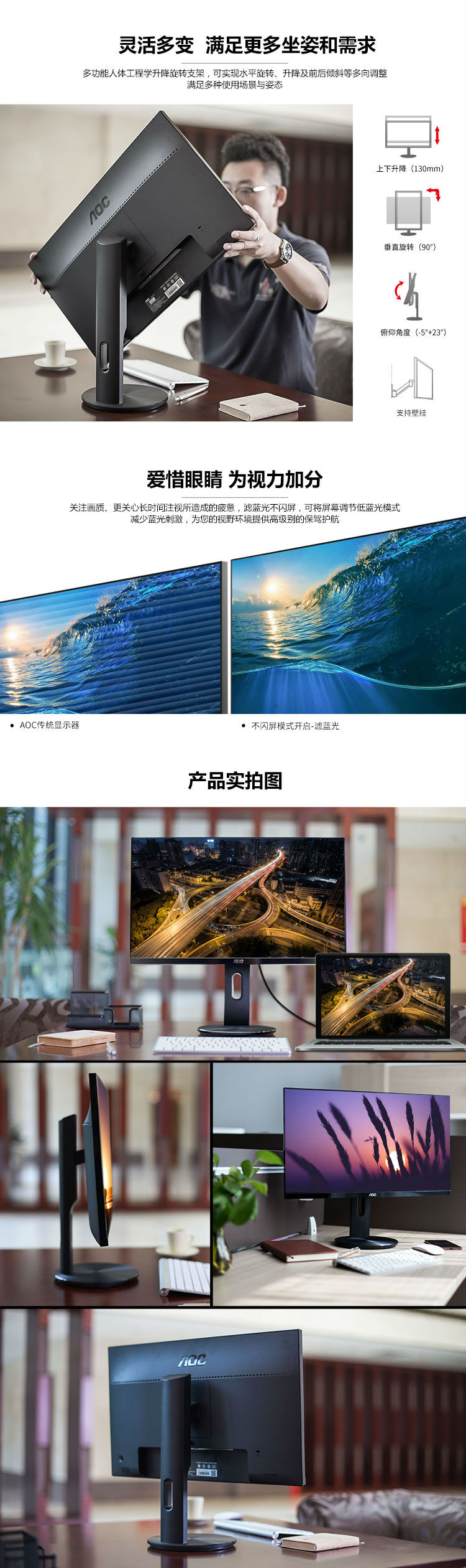 • 產(chǎn)品品牌:AOC顯示器 Q2490VXQ 23.8寸 IPS 2K無邊框高清液晶顯示器