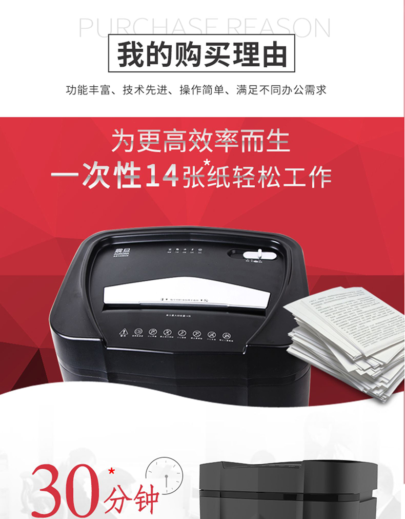 • 產品品牌:震旦 AS1430CD 20L大容量30分鐘長時間4級保密辦公碎紙機