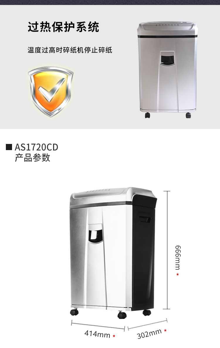 • 產(chǎn)品品牌:震旦(AURORA)AS1720CD多功能大容量專業(yè)辦 4級(jí)保密碎紙機(jī)低音 AS1720CD