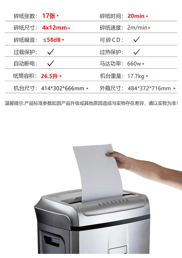 • 產(chǎn)品名稱:震旦(AURORA)AS1720CD多功能大容量專業(yè)辦 4級(jí)保密碎紙機(jī)低音 AS1720CD