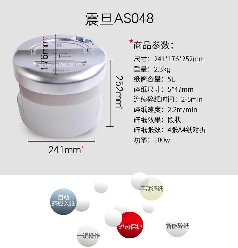 • 產(chǎn)品名稱:震旦AS048辦公碎紙機(jī)單次4張低音便攜小型家用桌面型迷你粉碎機(jī)
