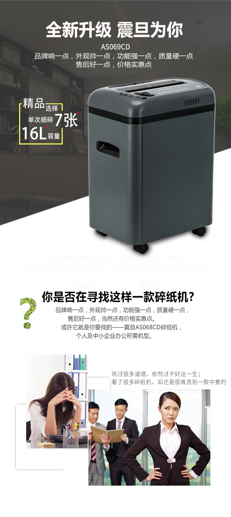 • 產(chǎn)品品牌:震旦AS069CD多功能碎紙機(jī)辦公單次6張5級保密低音碎CD