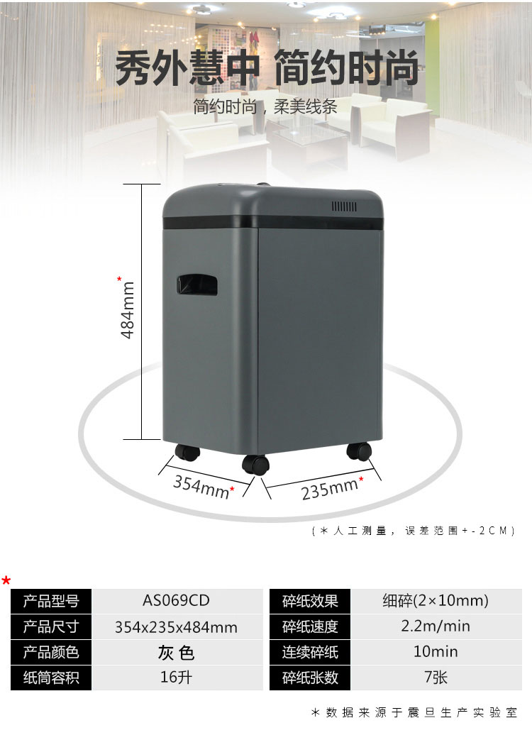 • 產(chǎn)品名稱:震旦AS069CD多功能碎紙機(jī)辦公單次6張5級保密低音碎CD