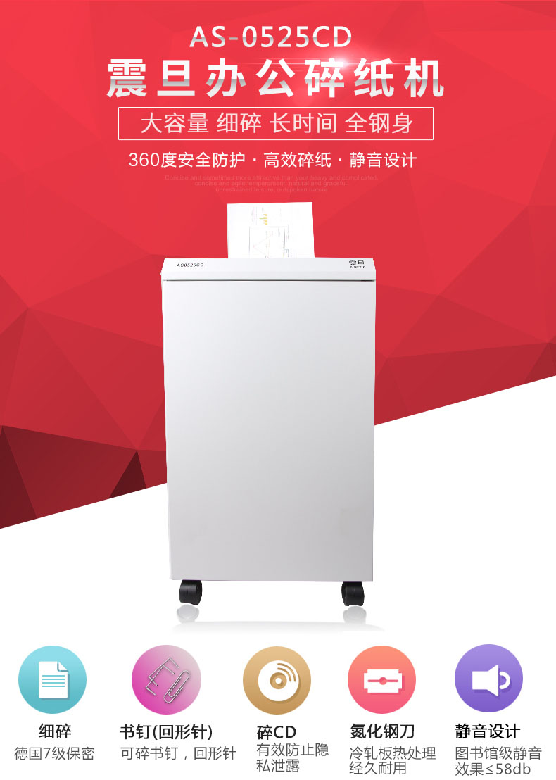 • 產(chǎn)品品牌:震旦AS0525CD 德國(guó)7級(jí)保密全鋼機(jī)身大容量專業(yè)級(jí)辦公碎紙機(jī)高保密大型