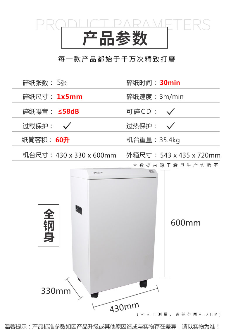 • 產(chǎn)品名稱:震旦AS0525CD 德國(guó)7級(jí)保密全鋼機(jī)身大容量專業(yè)級(jí)辦公碎紙機(jī)高保密大型