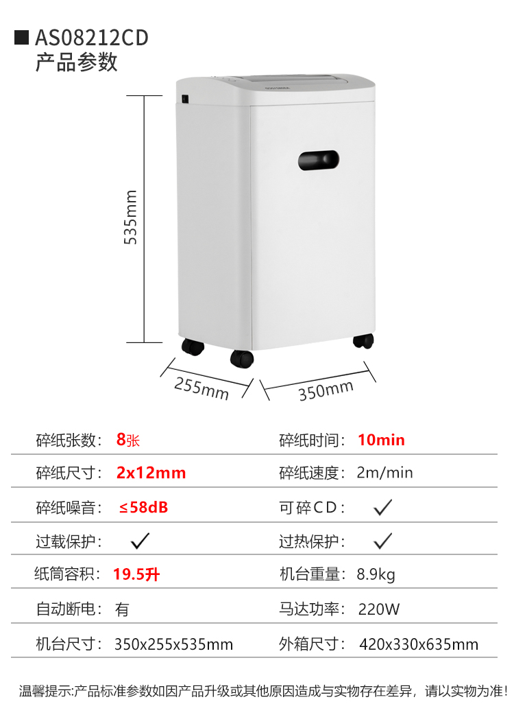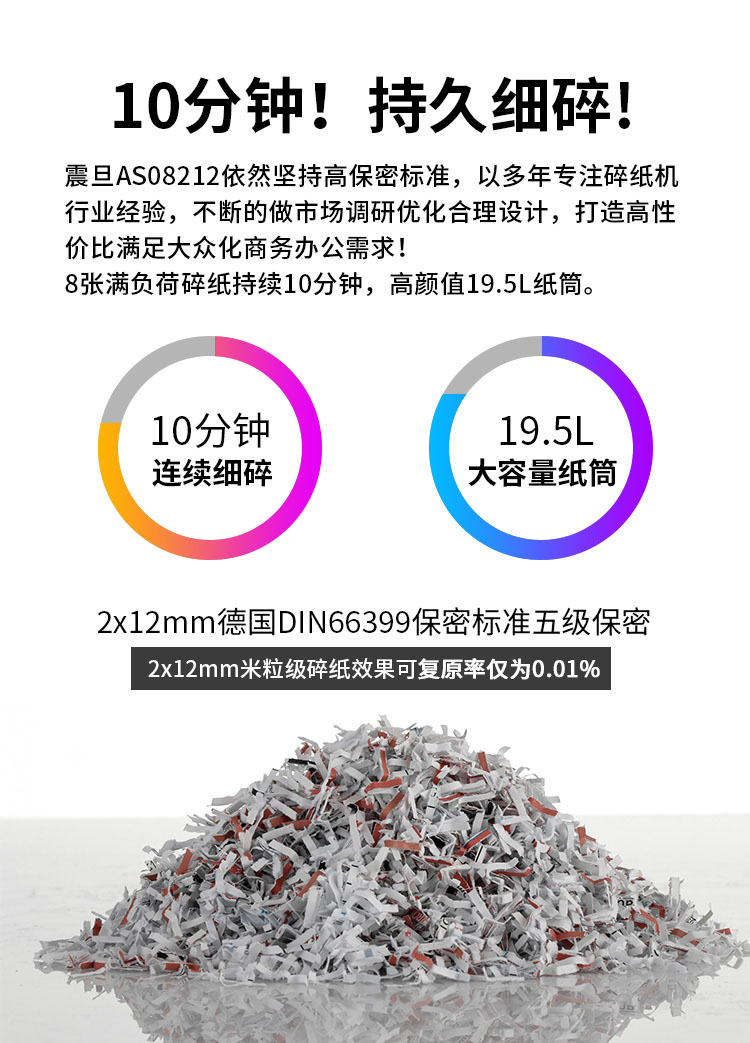 • 產(chǎn)品名稱:震旦AURORA AS08212CD 碎紙機(jī)辦公大功率商用粉碎機(jī)紙自動(dòng)電動(dòng)辦公室文件碎紙高保密粒裝