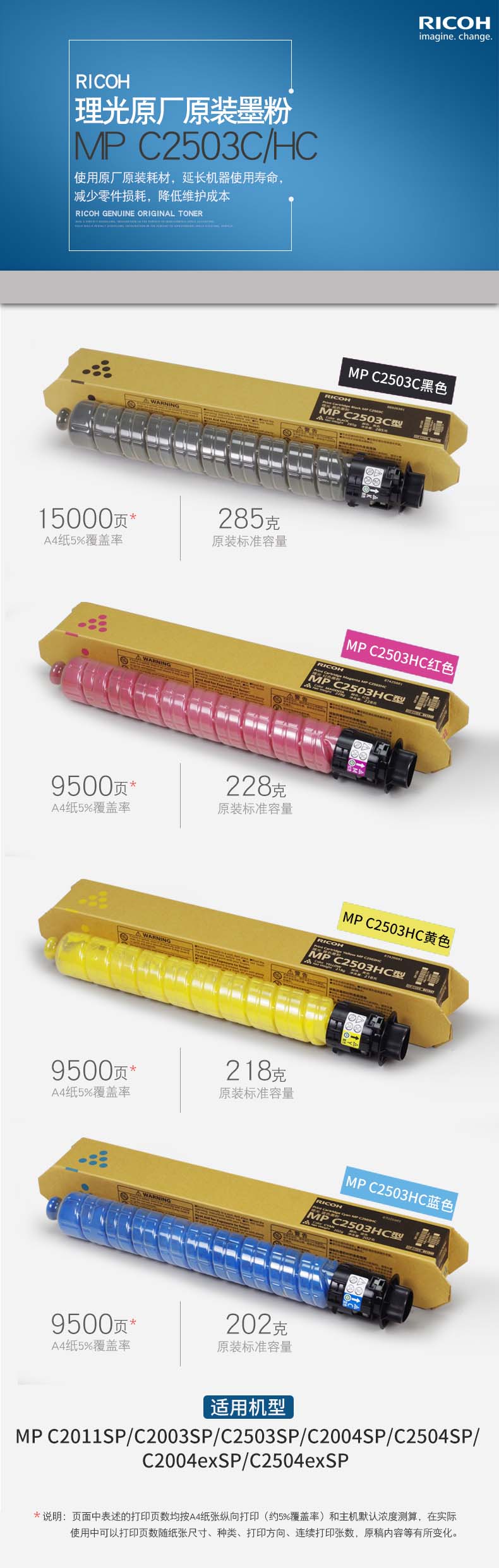 • 產品品牌:理光MP C2503HC型碳粉墨粉盒 黑紅黃藍適用C2011/C2003/C2503SP