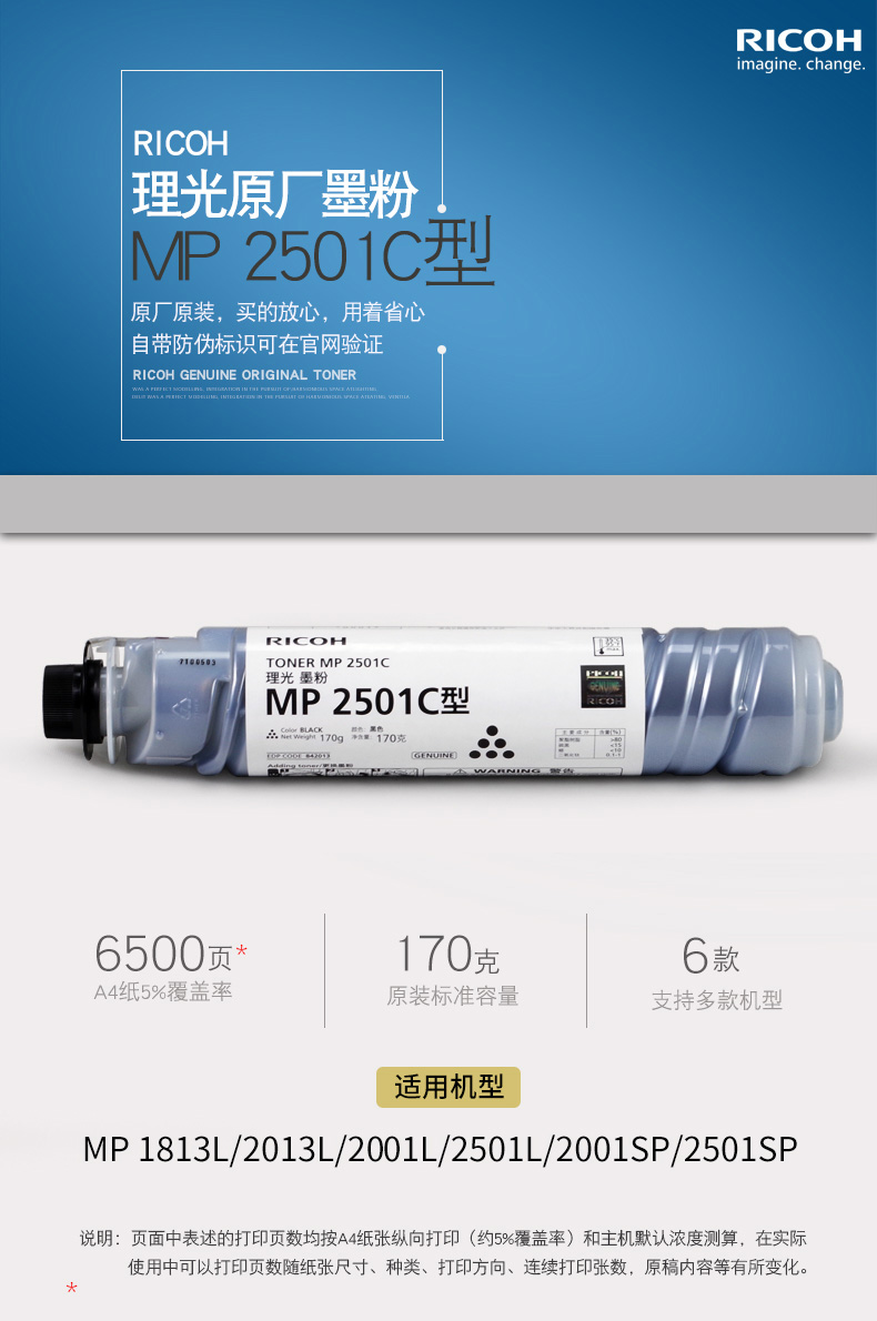 理光MP 2501C碳粉墨粉2001SP/2501SP/2501L/1813L/2013L原裝粉盒
