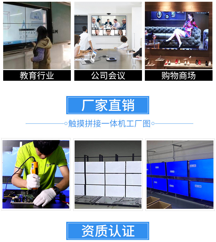 • 產(chǎn)品名稱:藍(lán)舟98寸110寸140寸液晶拼接屏窄邊拼縫會議監(jiān)控觸摸拼接一體機(jī)