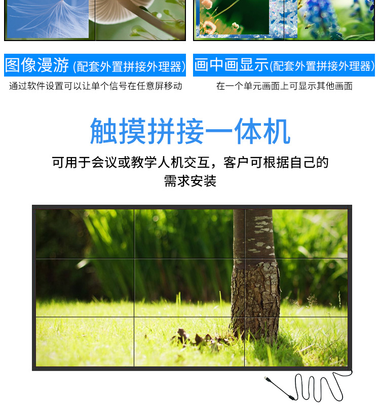 藍(lán)舟98寸110寸140寸液晶拼接屏窄邊拼縫會議監(jiān)控觸摸拼接一體機(jī)