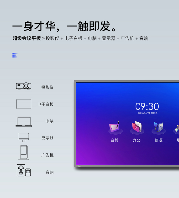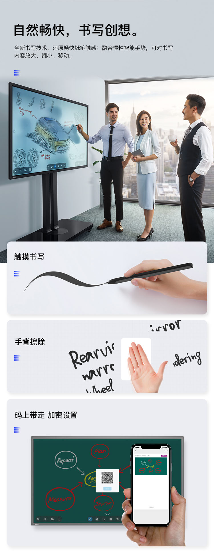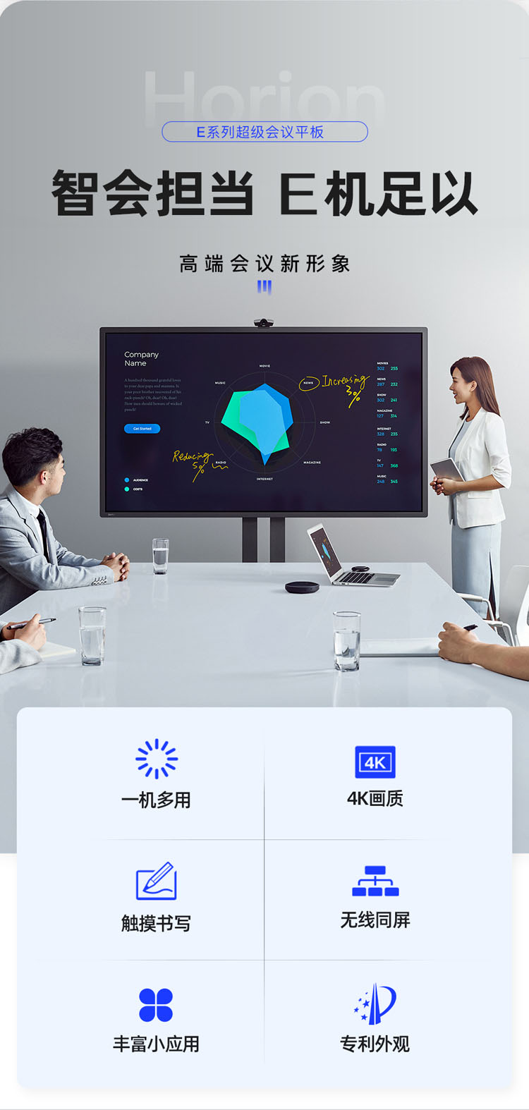 • 產(chǎn)品名稱:皓麗 Horion E65超級(jí)智能會(huì)議平板高性價(jià)比電子白板辦公教學(xué)投影觸摸書寫標(biāo)配含智能筆同屏器