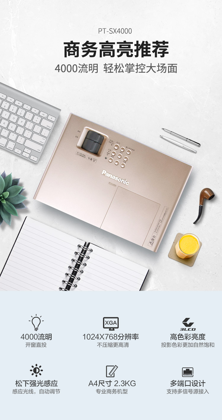 • 產(chǎn)品名稱:松下(Panasonic)PT-SX4000 投影儀 投影機(jī) 辦公 商務(wù) (標(biāo)清 4000流明 HDMI)