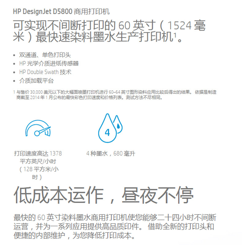 • 產(chǎn)品名稱:HP DesignJet D5800 60英寸(1524 毫米)商用打印機(jī) (F2L45B)