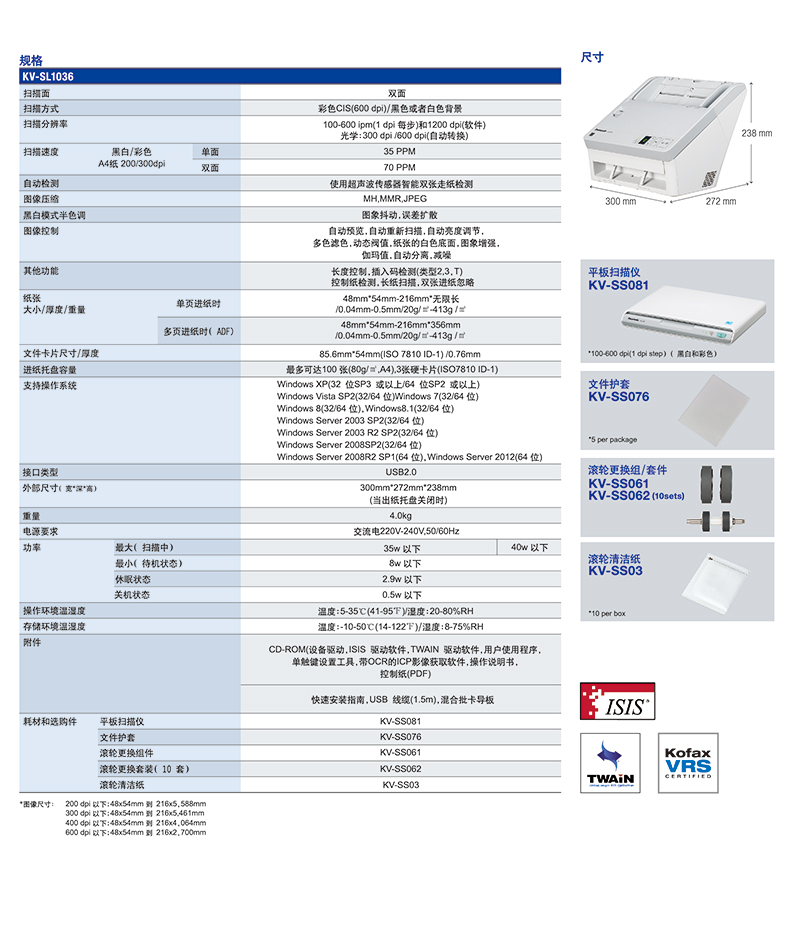 • 產(chǎn)品名稱:松下 KV-SL1036 彩色文檔掃描儀