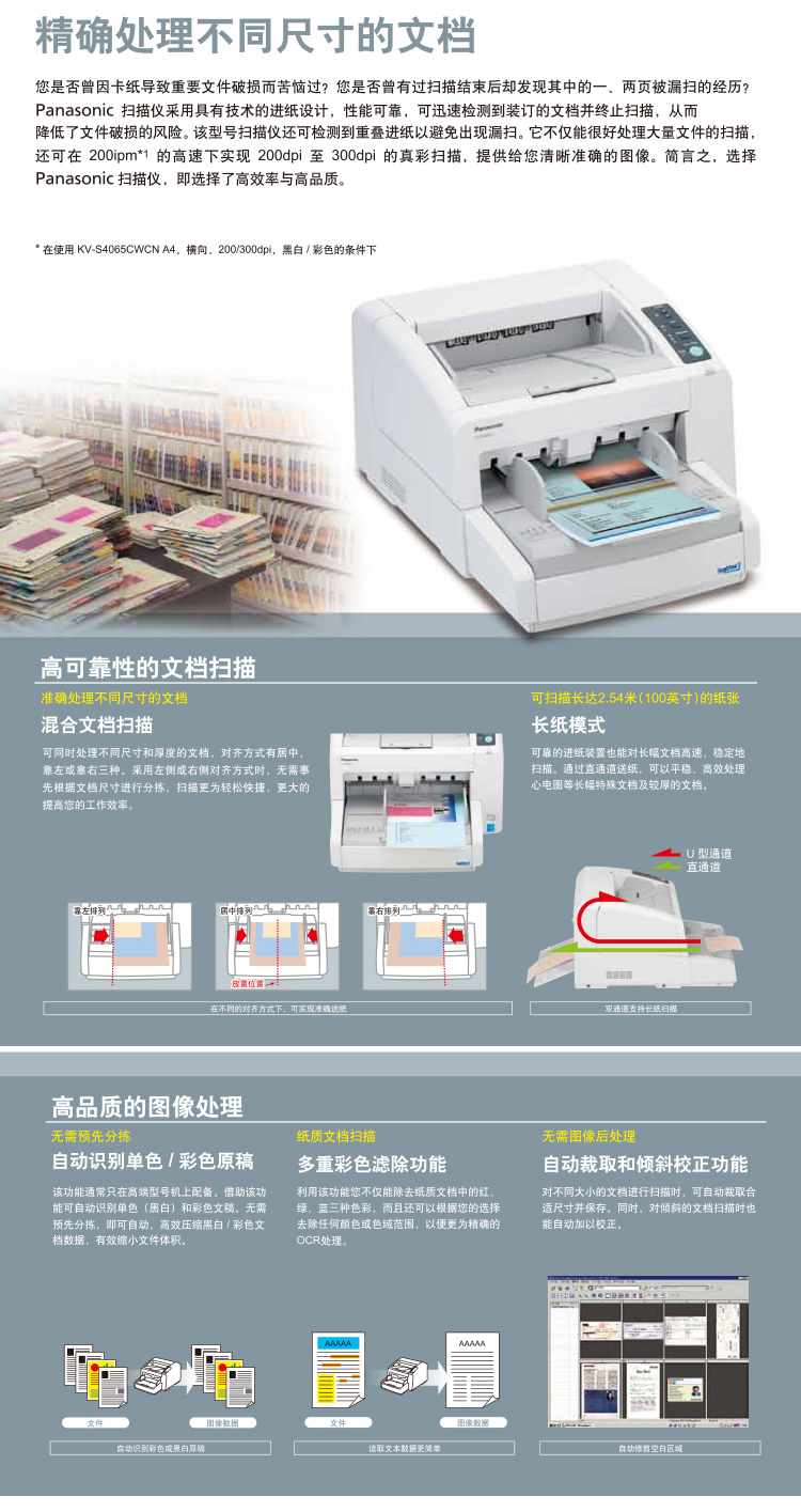 • 產(chǎn)品名稱:松下(Panasonic) KV-S4065CWCN A3高速彩色文檔掃描儀