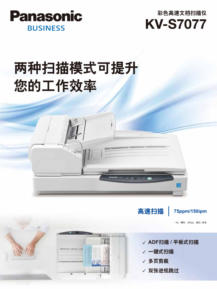• 產(chǎn)品名稱:松下 KV-S7077 A3高速雙面彩色文檔掃描儀