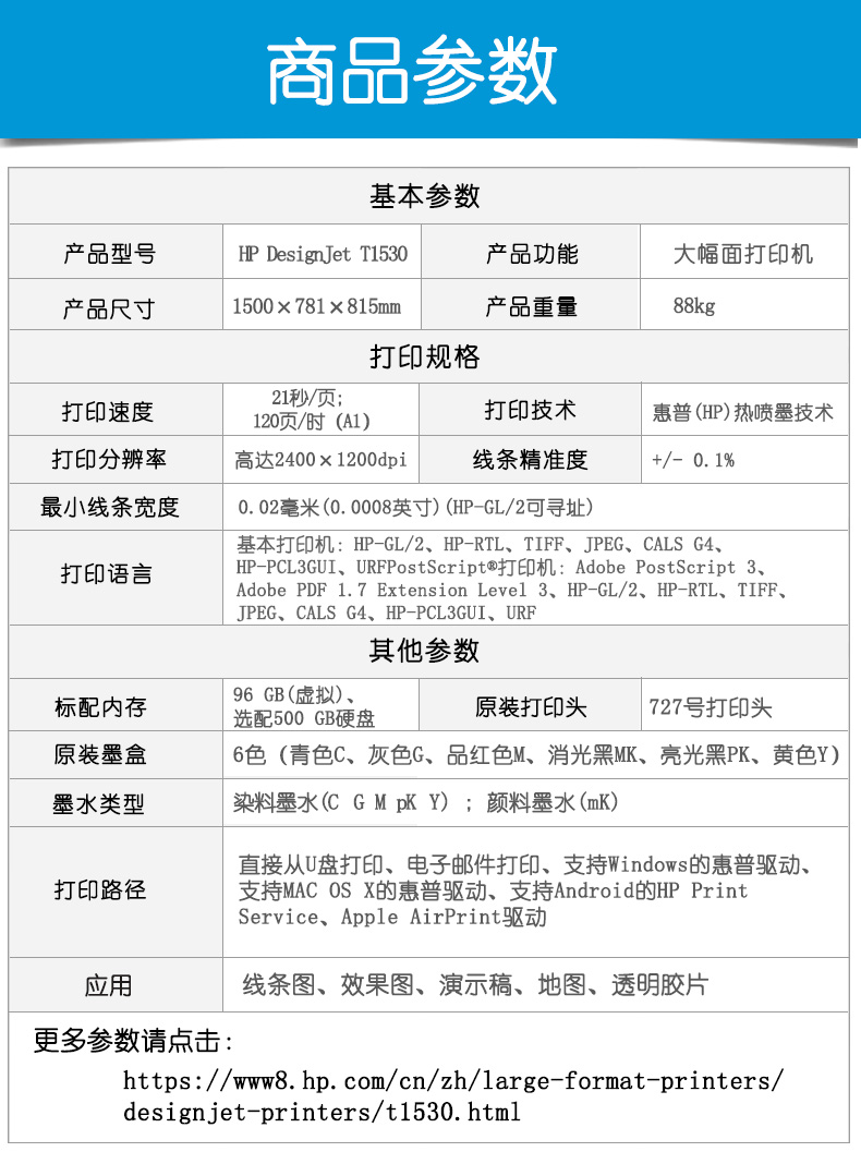 • 產(chǎn)品名稱:惠普(HP)T1530PS 高速藍圖機大幅面打印機