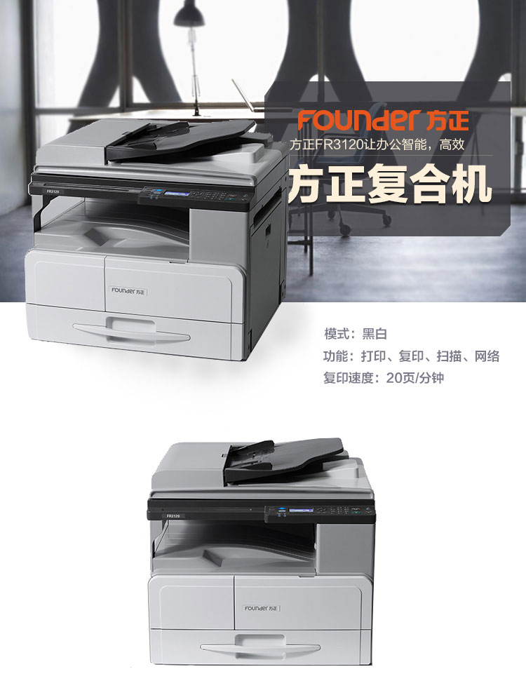 • 產(chǎn)品品牌:方正 (Founder) FR3120 多功能數(shù)碼復(fù)合機(jī)掃描復(fù)印機(jī)打印機(jī)一體機(jī)