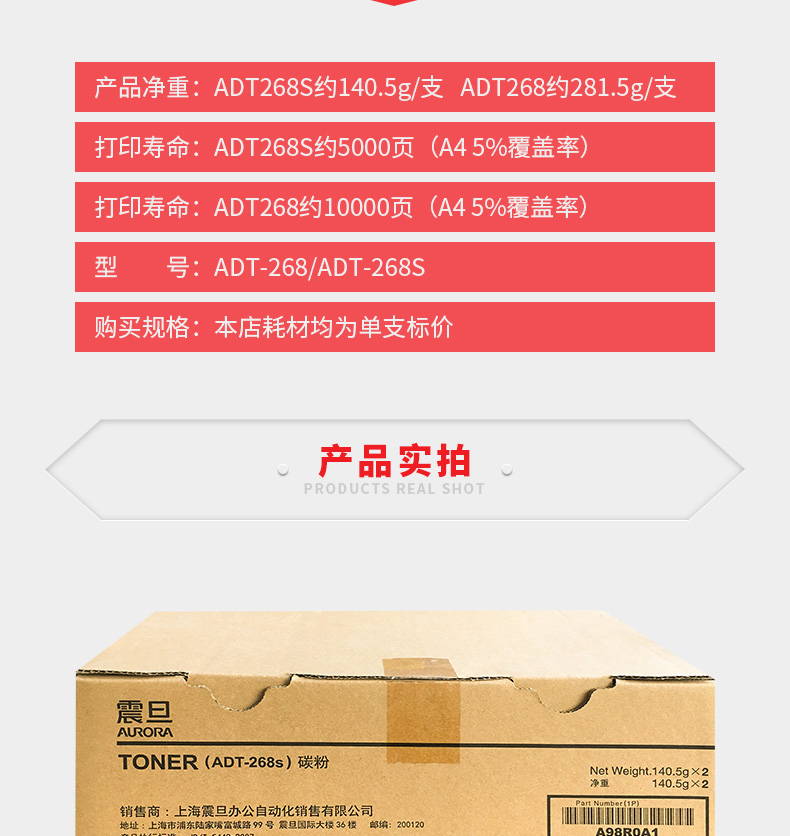 • 產(chǎn)品名稱:震旦原裝ADT-268 粉盒碳粉 適用AD268 AD308復(fù)合機(jī)墨粉 粉盒