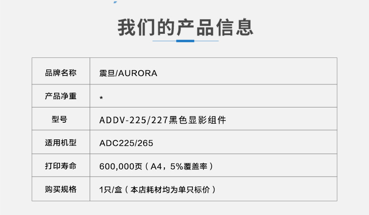 • 產(chǎn)品品牌:震旦(AURORA)ADDV-225/227黑色顯影組件(適用ADC225/265)60萬頁