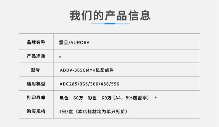 • 產(chǎn)品品牌:原裝震旦 ADDV-365KCMY顯影組件適用ADC 285/365/366/456/556機型