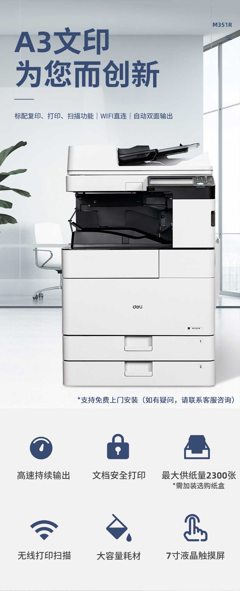 • 產(chǎn)品名稱:得力M351R A3黑白多功能數(shù)碼復(fù)合機(jī)大型商用辦公激光一體機(jī)打印機(jī)