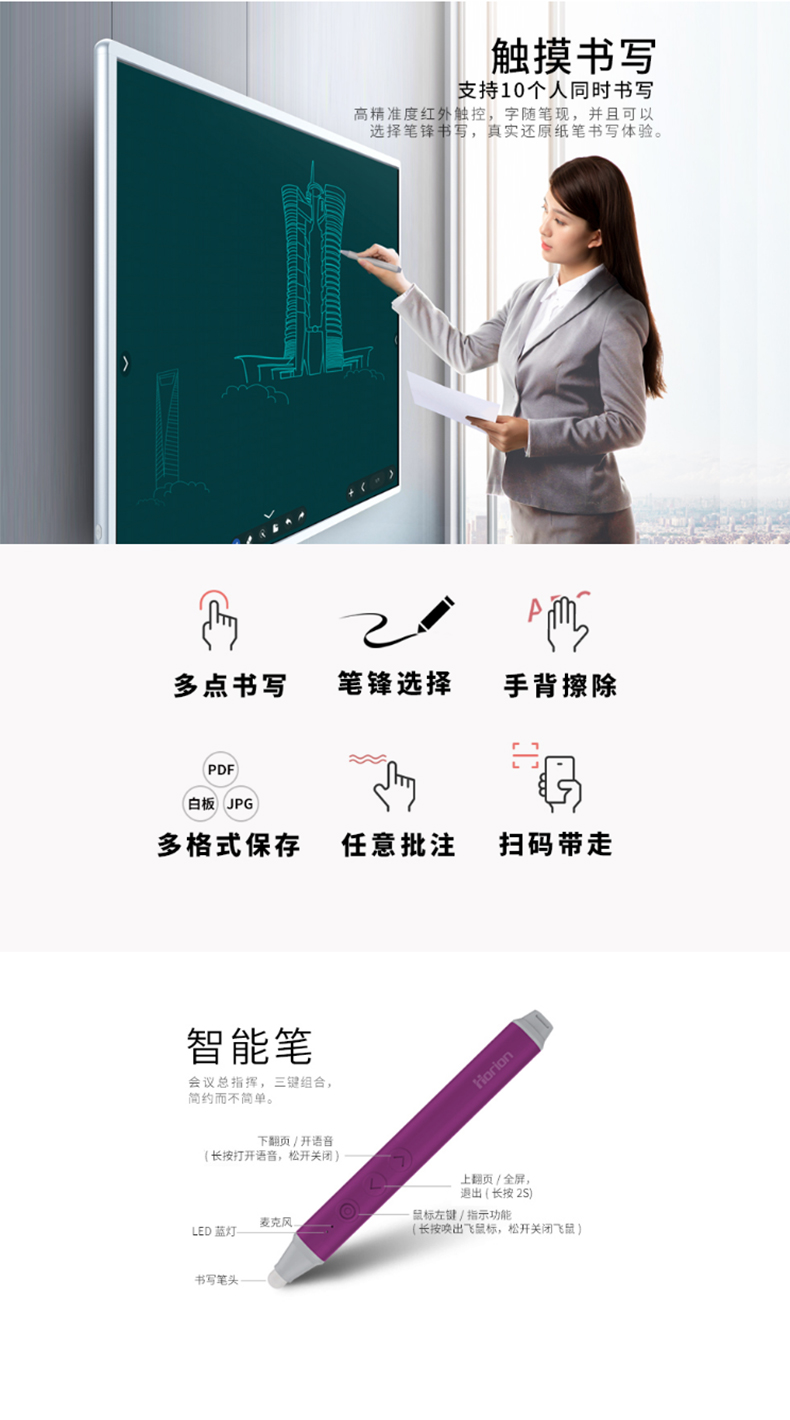 • 產品品牌:皓麗Horion 65M2S 會議平板多媒體教學一體機電子白板會議大屏