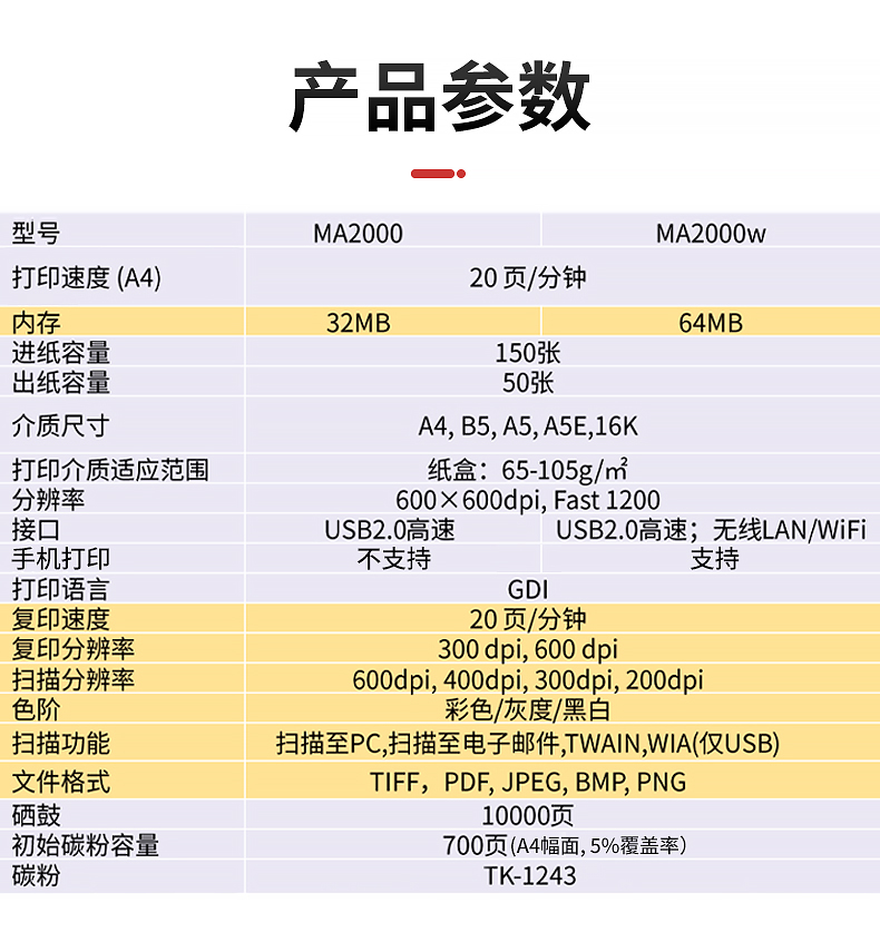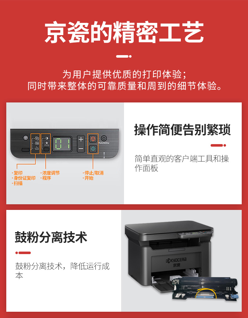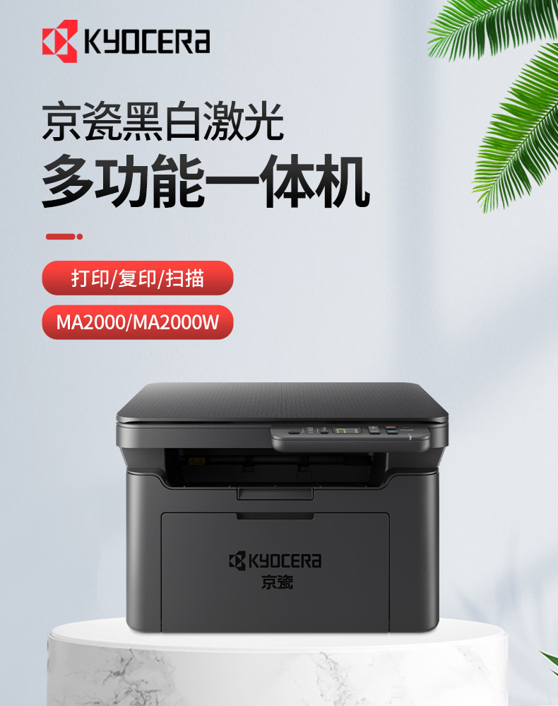 • 產(chǎn)品名稱:京瓷MA2000/MA2000w A4黑白激光多功能一體機(打印 復(fù)印 掃描)