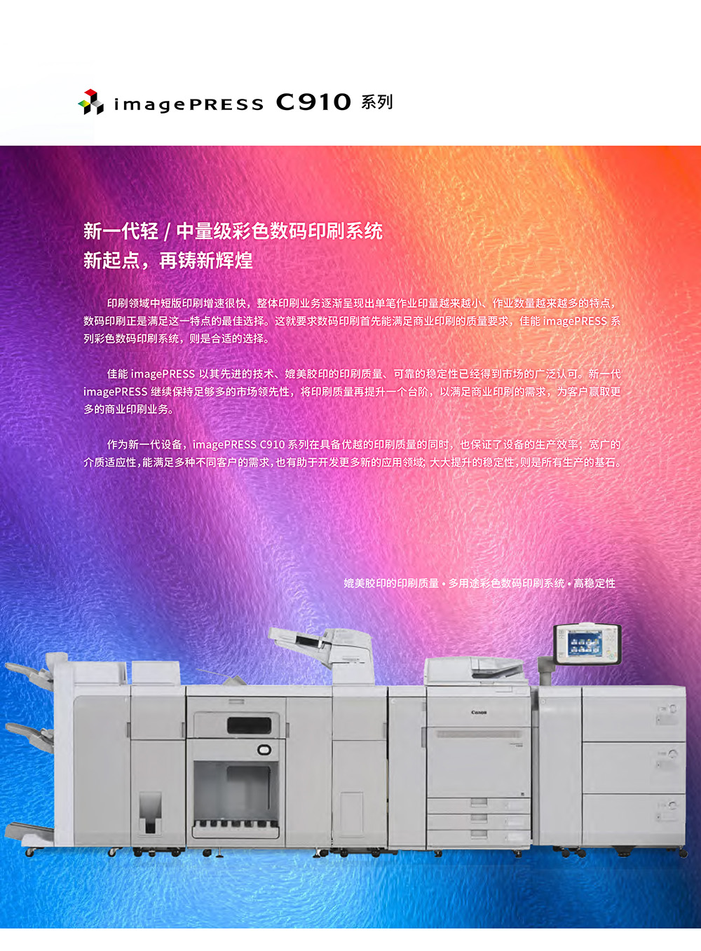 • 產(chǎn)品名稱:佳能(Canon)imagePRESS C710/C810/C910單張紙彩色數(shù)碼印刷系統(tǒng)