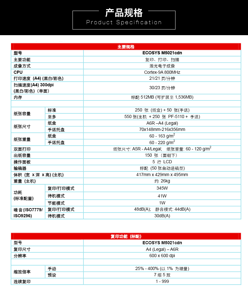 • 產(chǎn)品名稱:京瓷(KYOCERA)M5021cdn多功能一體機