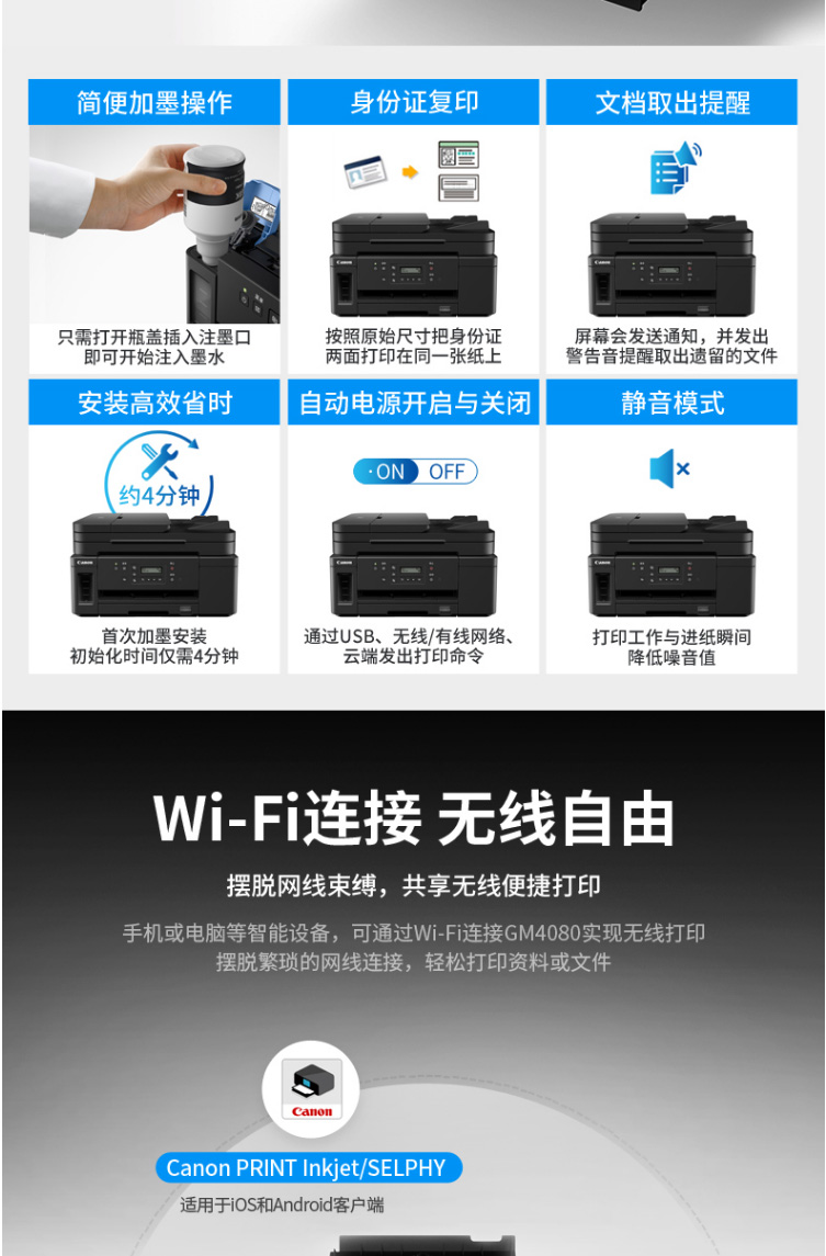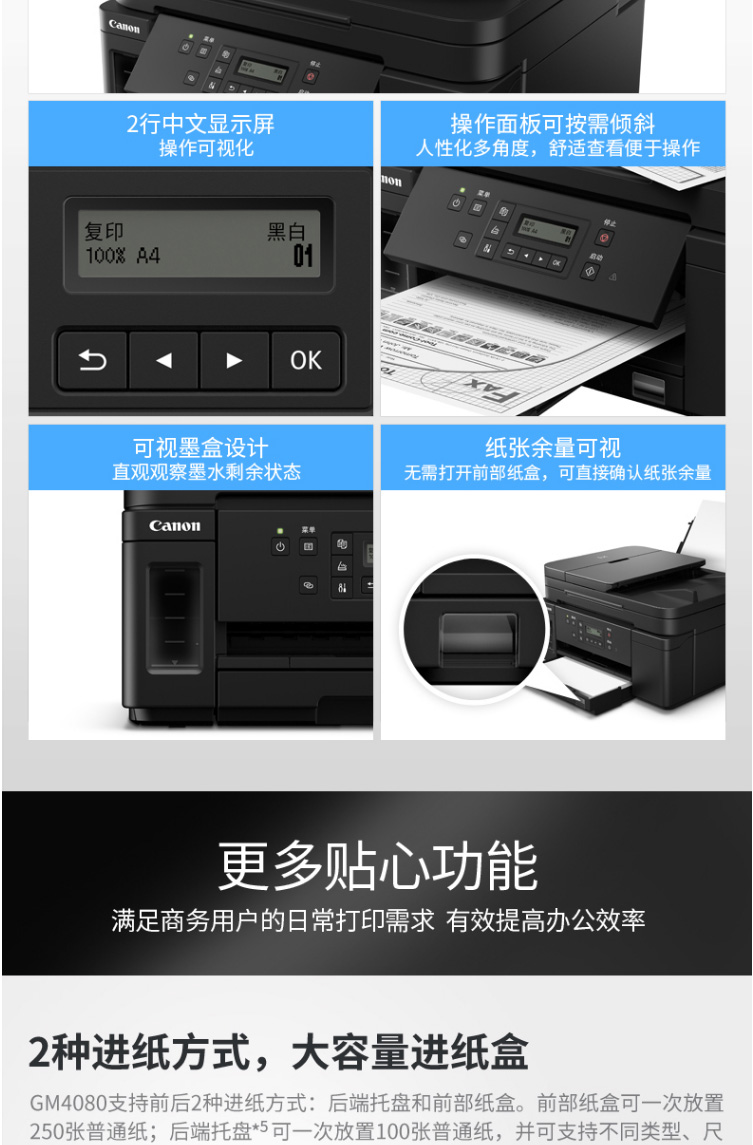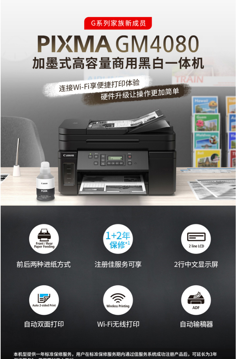 佳能(Canon)GM4080 加墨式高容量商用黑白一體機(jī)(自動(dòng)雙面打印/掃描/復(fù)印/WIFI)