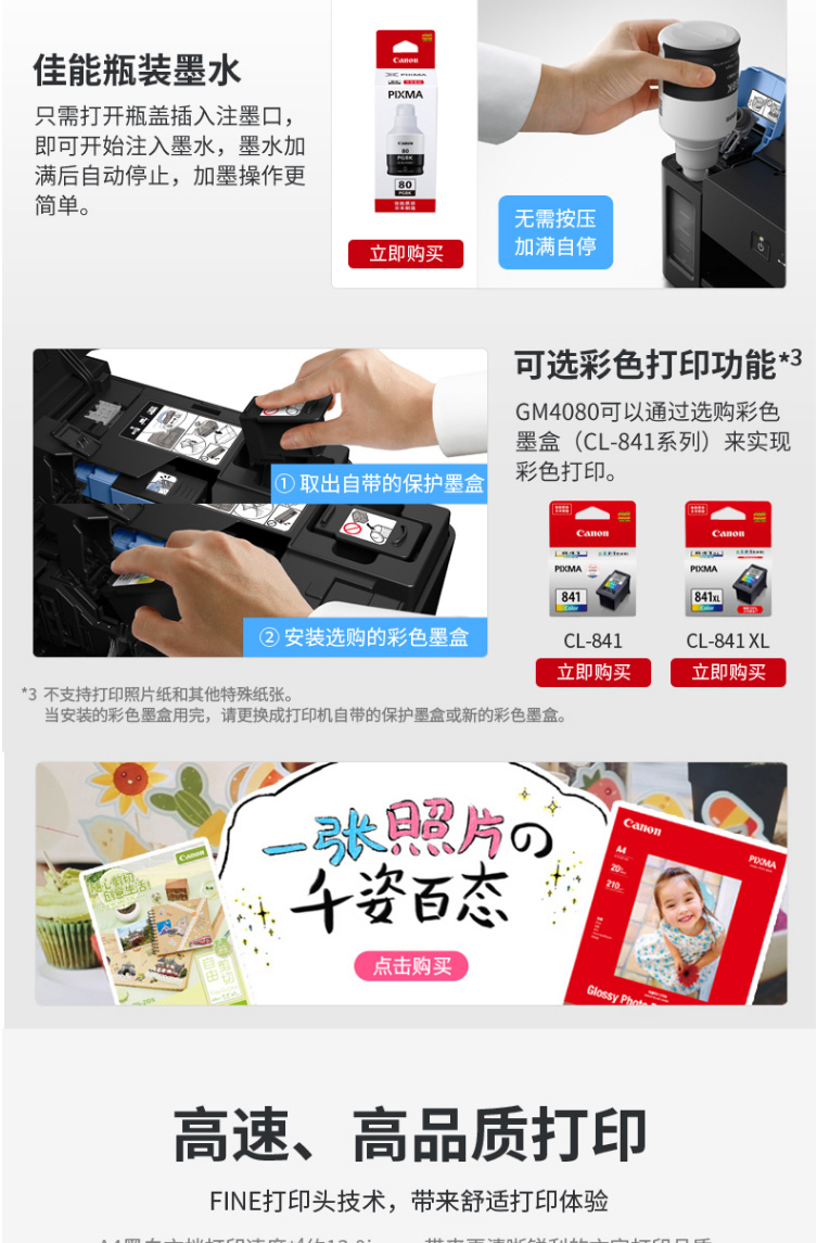 • 產(chǎn)品名稱:佳能(Canon)GM4080 加墨式高容量商用黑白一體機(jī)(自動(dòng)雙面打印/掃描/復(fù)印/WIFI)