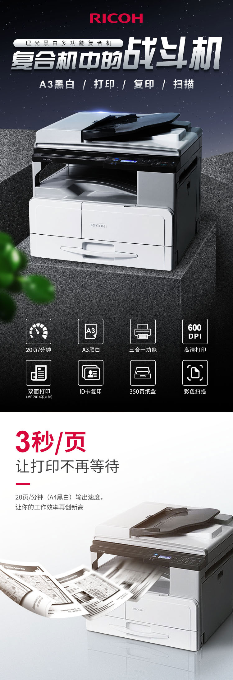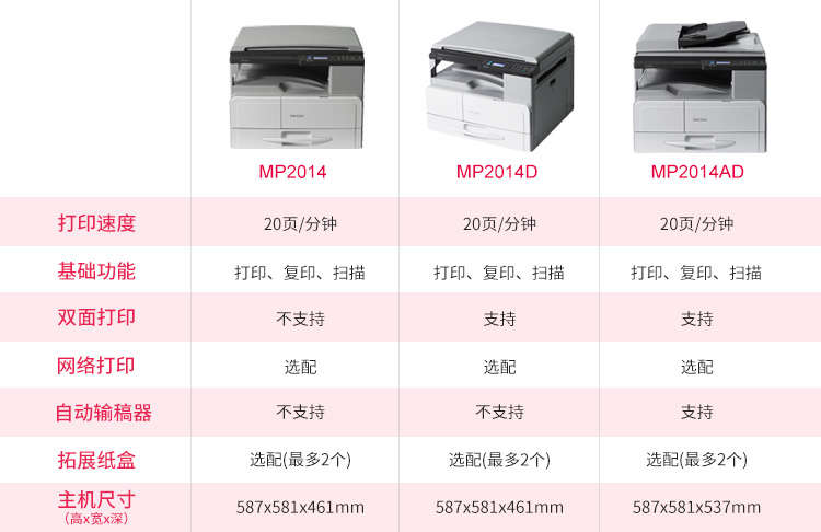 • 產(chǎn)品名稱:理光MP 2014/2014D/2014AD/2014N/2014DN/2014ADN A3黑白復(fù)合機(jī)