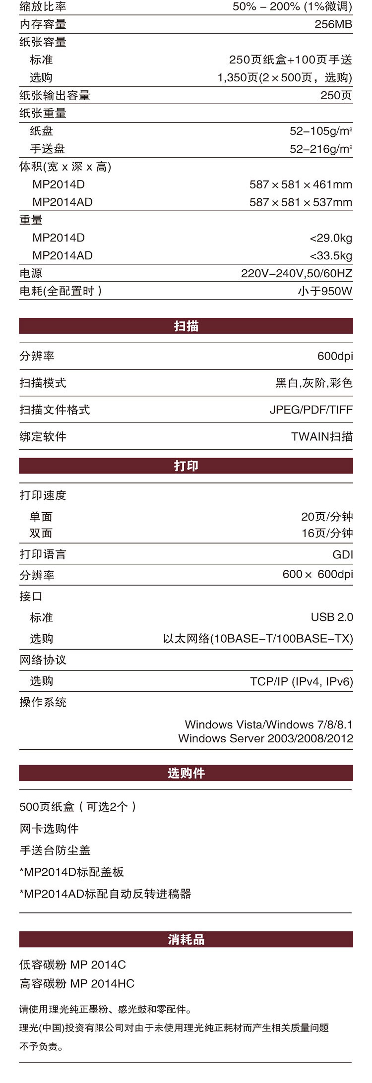理光MP 2014/2014D/2014AD/2014N/2014DN/2014ADN A3黑白復(fù)合機(jī)