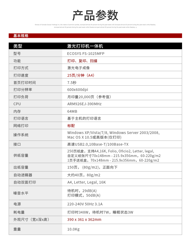 京瓷FS-1025MFP黑白一體機(jī) | 149元 | 黑色1500張 | 0.06元每張 | 1800 |
